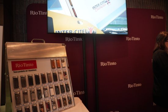 Parmi les exposants, on pouvait entre autres retrouver un kiosque animé par les experts de l’environnement et de la valorisation qui présentaient les différentes initiatives de Rio Tinto, notamment celles concernant l’anhydrite et le CHAC, qui consistent à valoriser les résidus issus de la production de l’aluminium.