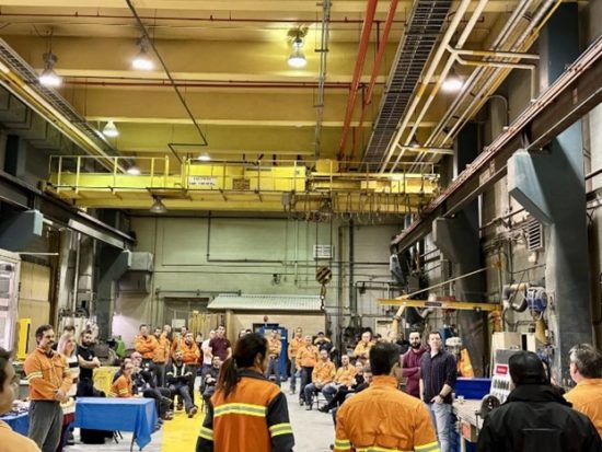 Le 22 novembre, les employé(e)s et les partenaires de la communauté se sont rassemblés au cœur de la salle mécanique de l’Usine de Fluorure du Complexe Jonquière pour le dévoilement et la distribution des tout premiers pots de confiture aux bleuets récoltés, un symbole choisi pour unir ces deux sources de fierté régionale.