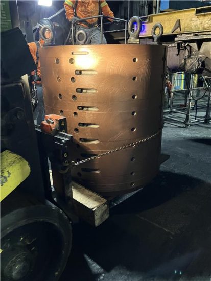 Une autre page d’histoire se tourne du côté de l’Usine Arvida avec le dernier remplacement de moule à la tour à pâte du Centre de produits anodiques, marquant une étape importante avant la fermeture de l’usine. Il s’agit d’une opération qui a été réaliséetous les 18 mois depuis l’arrivée des salles de cuves précuites du Centre électrolyse Ouest.