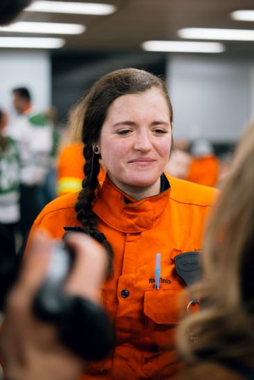 « Pour moi, c’est vraiment une très grande fierté parce que nous avons travaillé fort dans les derniers mois pour se préparer pour fermer la salle de cuves, aujourd’hui. Nous avons essayé de le faire de la façon la plus contrôlée possible en termes de procédé et d’opérations avec le moins d’impact possible sur notre main-d’œuvre. Donc, c’est une fierté qu’on ait aboutie aujourd’hui avec un beau niveau de préparation, dans le calme et la bonne humeur. Ma plus grande fierté est que ça se soit fait comme on le voulait, dans nos plans », mentionne Gabrielle Milot, surveillante principale au CEO.